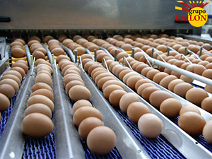 Superados estos controles, marcamos los huevos con el código de la explotación, los clasificamos por peso y los envasamos. Normalmente se colocan en palés de 11.880 huevos, o en cajas de 360 huevos, que forman un palé.